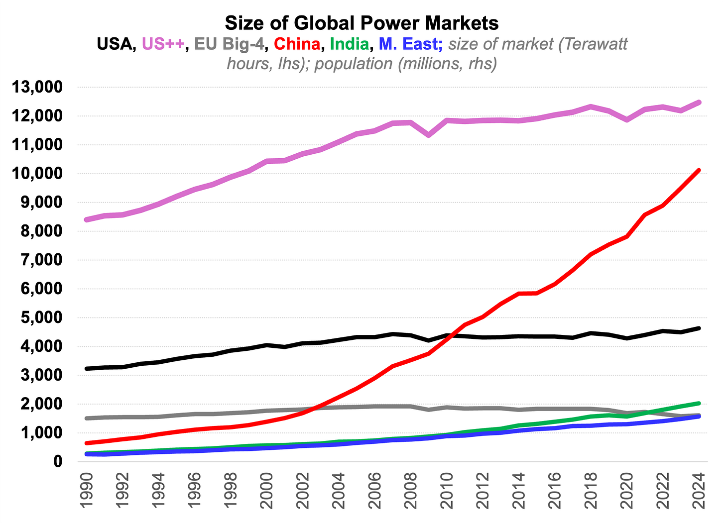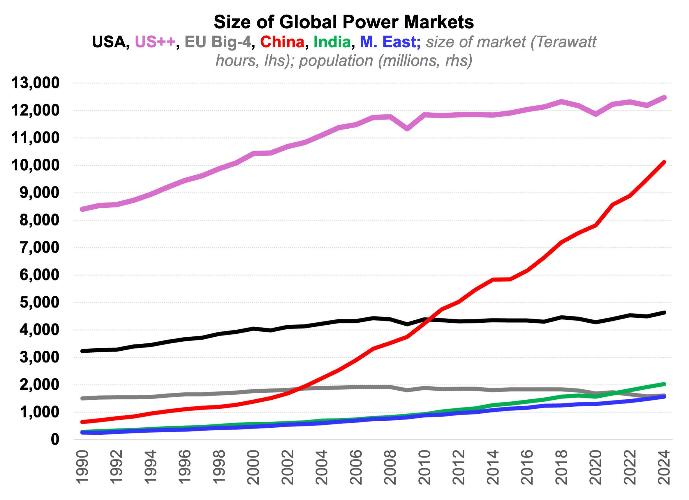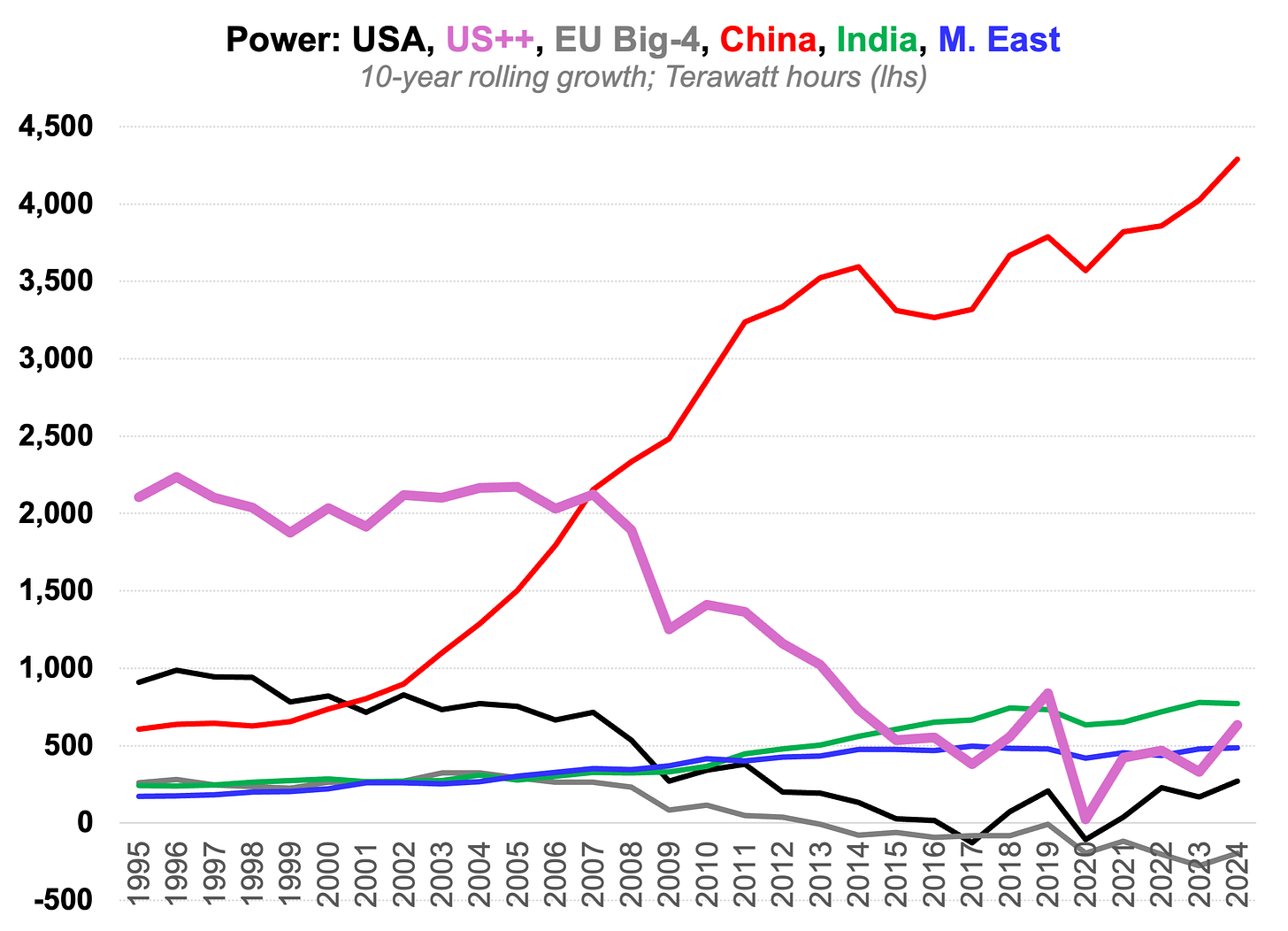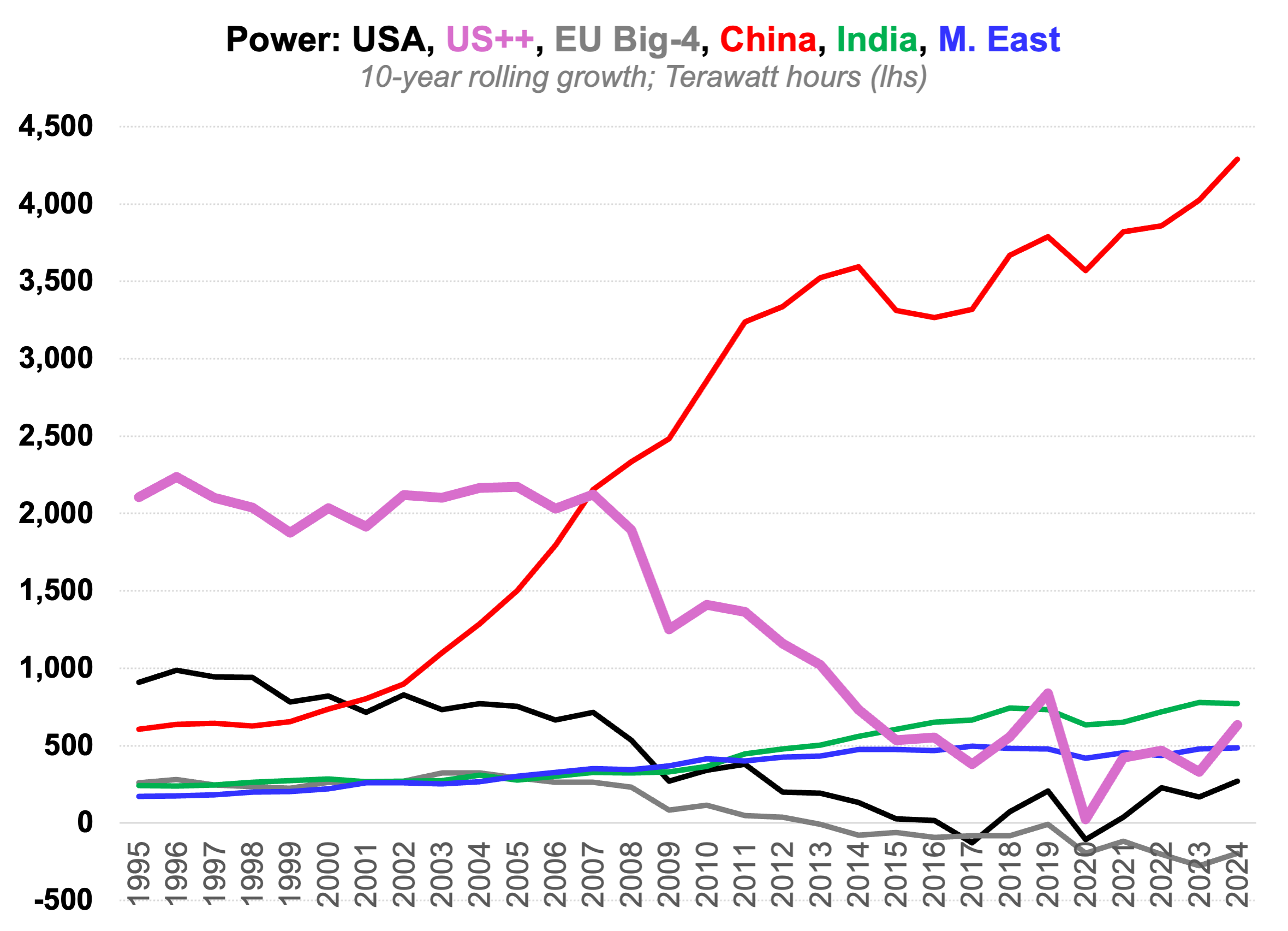 As we discussed in a December 6, 2025 post (here), China has a massive power capacity lead over every other country or region—it’s not a close call (Exhibit 1). That lead is on-track to expand as China is also growing at many multiples of every other major country or region (Exhibit 2). The U.S. is moving from no-growth to at least some growth mode, which we believe will be confirmed in 2026.